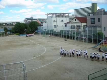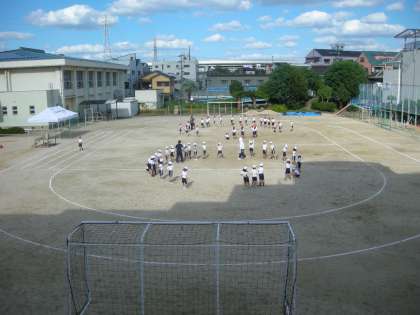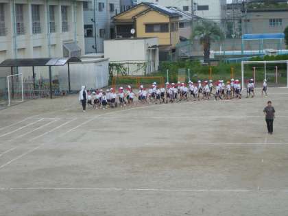 さわやかな秋風が吹く中、1年生が、運動会練習(隊形練習)を行っていました。