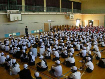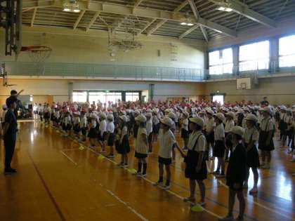 10月17日(木)8:30〜、講堂で児童集会(運動会練習)を実施しました。