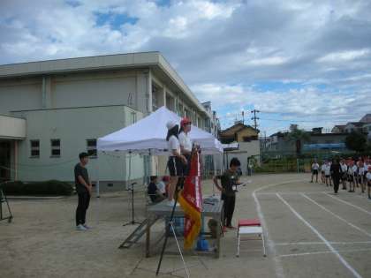 おわりの体操、得点発表、優勝旗・準優勝盾授与、学校長講評と練習を進めました。