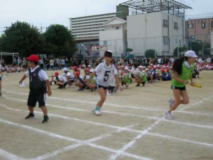 華麗なバトンリレー。5年生は、全員がしっかりバトンをつなぎました。
