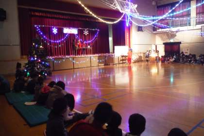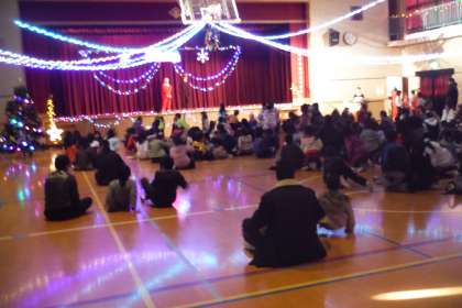 12月13日(日)、川北連合子ども会主催のお楽しみイベントが行われました。ジュニアリーダーの中高生の人たちが、ゲーム等などしてとても楽しく進めてくれました。昨年にも増して、電飾がとても豪華でした。