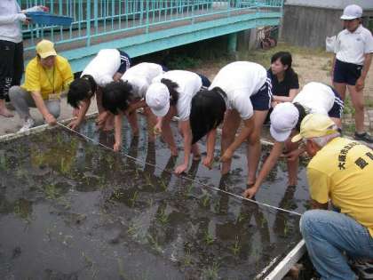 川北小学校には、田んぼがあります。その小さな田んぼで、5年生が田植えをしました。近畿農政局の方と愛育会の方にお手伝いをいただきました。本当にありがとうございました。