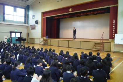 例年になく暖かなお正月を迎え、引き続き本日も穏やかな天候のもと、始業式を行いました。子どもたちは、久しぶりに会った友だちと冬休み中の出来事などを話しながら、とても楽しそうな表情をしていたのが印象的でした。