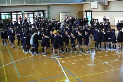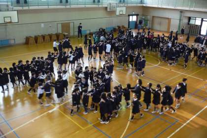 ジャンケン列車をしました。最後、先頭だった人は、学年・名前・好きなスポーツを答えていました。