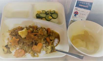 レバーはくせのある食べ物ですが、今日の給食では、しょうがやにんにく、セロリを使って食べやすくしています。