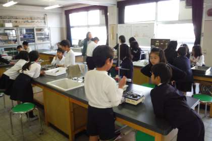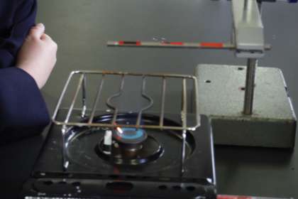 金属のあたたまり方を調べてみました。熱の伝わり方が分かりやすいように、示温テープを貼って実験をしました。