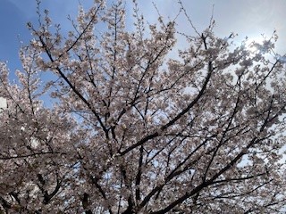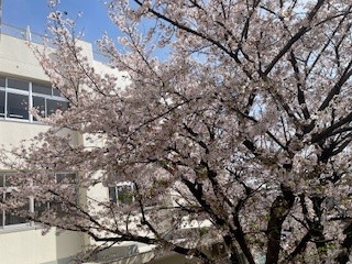 4月1日にはまだちらほらしか咲いてなかった校門前の桜が満開です。とてもきれいで、見入ってしまいました。