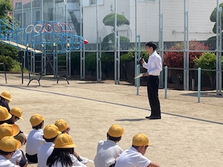 2時間目に火災の避難訓練をしました。理科室から火災が起こった想定で実施しました。みんなしっかり集中して取り組んでいました。命を守るためにどうすればいいかお家でも話してみてください。