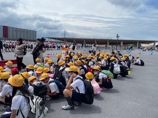 東ゲートに到着しました。1・6年でペアになり、これから入場します!