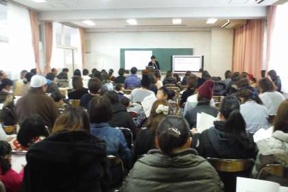 昨日、平成28年度入学予定の保護者の方を対象に、入学説明会を行いました。来年度は、1クラス増えて3クラスのスタートなります。大勢の保護者の方とお子様とで、多目的室も満杯状態でした。