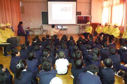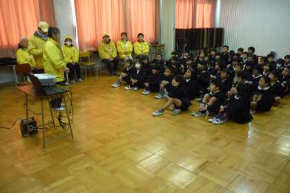 昨日に引き続き、愛育会の皆様から川北のむかしのお話をお聞きし、その後、七輪でお餅を焼焼いていただき食べました。むかしのお話では、子どもたちから「当時の児童数は?」「体育館はありましたか?」等たくさんの質問が出されました。その後、七輪で火を起こしてお餅を焼いていると、お餅が焼けた美味しそうな匂いがしだし「早く食べたい!」という表情で待っている姿が印象的でした。