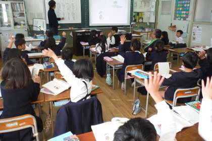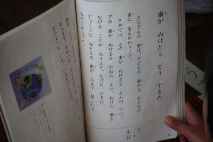 「はがぬけたらどうするの」の学習で、いろいろな国で歯が抜けた時の処理方法のなかから、自分で選んで発表しました。その国を選んだ理由について、自分の考えを入れて発表ができていました。