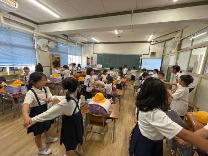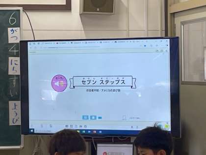 終わりの会で静かに座っていましたが、「さっきみんなでやったセブンステップスを見てもらいたい」と披露してくれました。2人組で音楽に合わせて楽しそうに手遊びしていました。