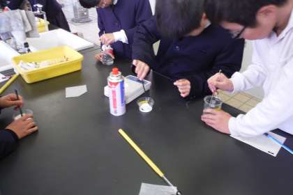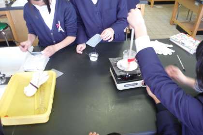 本日の問題は、「水の量を変えずに溶け残ったものを溶かすには?」を解決するために実験を行いました。
