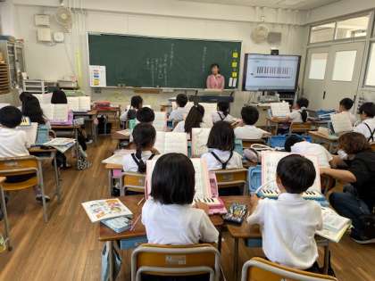 鍵盤ハーモニカで「ちょうちょ」を演奏しました。指づかいにも気をつけました。