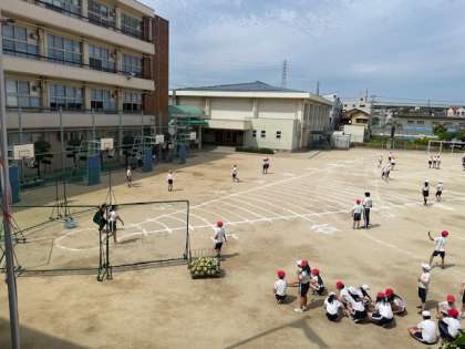 体力テストのソフトボール投げをしました。「投げる」力は低下して来ていると言われています。5年生は力を発揮できたかな?