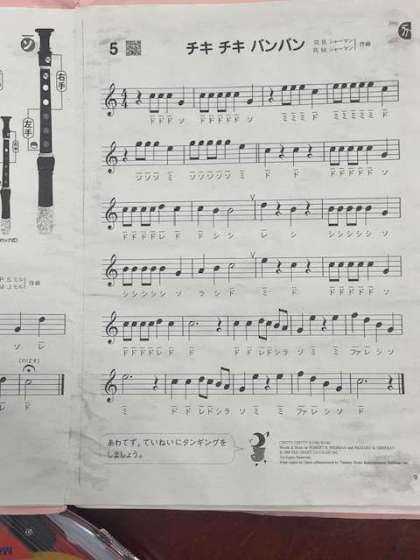 チキチキバンバンの曲をリコーダーで演奏しました。何度も練習してずいぶん上手くなりました。