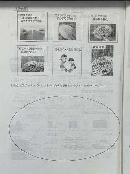 一泊移住で作成するスライスチップのデザインを考えました。「自分で使うから楽しみやー」と話しながら作ってました。教室のメダカもスイスイ泳いでいました。