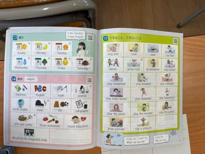 英語で自分の好きな時間割を作る学習をしました。どんな時間割になったかな。