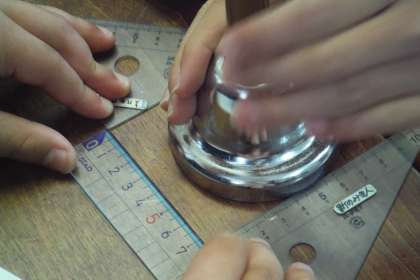 直径の長さとと円周の長さとの関係について、学習しました。身の回りにあるさまざまな物の直径と円周の長さを測ってみました。