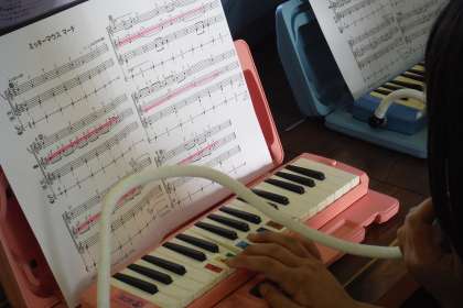 「ミッキーマウスマーチ」の曲を、楽器ごとのパートに分かれて演奏しました。