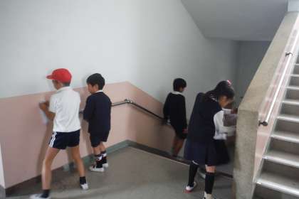 たてわり班がお昼休みから清掃時間を利用して、校舎内の壁など普段清掃ができていないところを中心に、ピカピカ大作戦を実施しました。