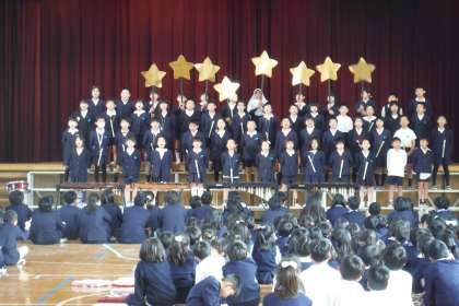 s1〜5年生が、卒業生に向けて「歌」「演奏」「メッセージ」など、心を込めて贈り物をしてくれました。卒業生も在校生に向けて、力強いメッセージと自分たちの気持ちを込めた歌を披露してくれました。とても良い「卒業を祝う会」となりました。