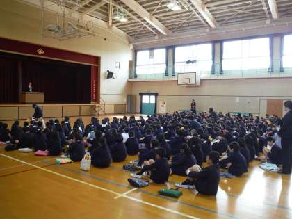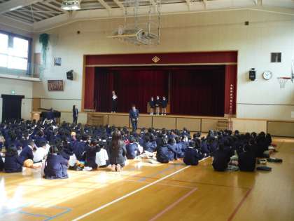 平成28年度1学期「始業式」を行いました。白色・赤色・黄色の色画用紙で作った飛行機で次のことを伝えました。子どもたちに、白色…「真剣に」赤色…「あきらめない」黄色…「協力」を意識づけました。そのうえで、何事に対しても、みんなで「協力」して「真剣」に「あきらめない」で最後までやり抜くことをこの一年、頑張ってみましょう!と伝えました。