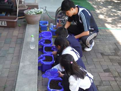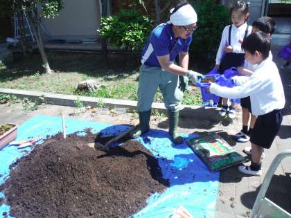明日、アサガオの種を植えるために管理作業員さんから土をもらいました。