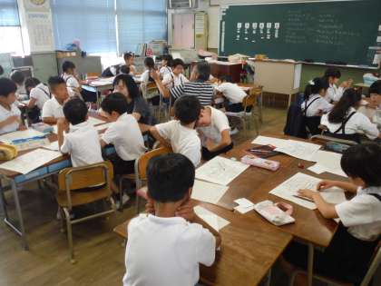今週の水曜日、中島町内のお店や施設を班ごとに回ります。その際、愛育会のみなさんや保護者の方にお手伝いいただいて、子どもたちの安全を確保します。子どもたちは、質問した答えを聞き取り、用紙に記入します。地域の皆さんのご協力をよろしくお願いします。