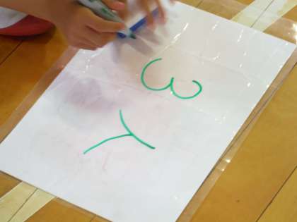 「何人通ったでしょ?」を答えるゲームをしました。計画委員の子どもたちは、一人を背負ったりして、確認し辛くしての出題でした。