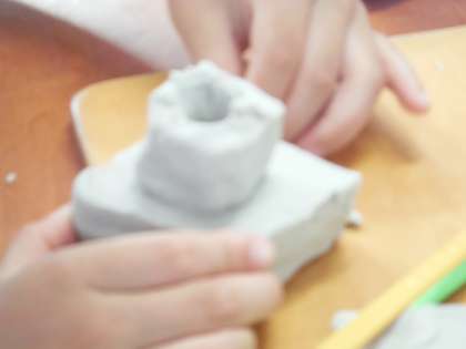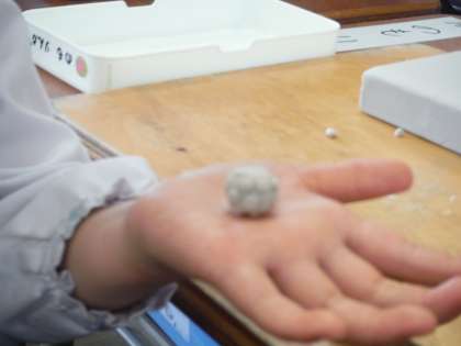 粘土細工をしました。写真は、カメラとサイコロです。