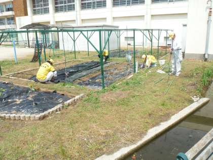 愛育会の皆さんが、学習園の手入れをしてくださいました。