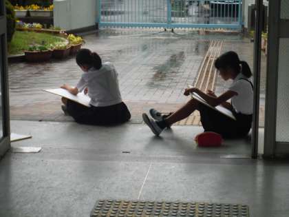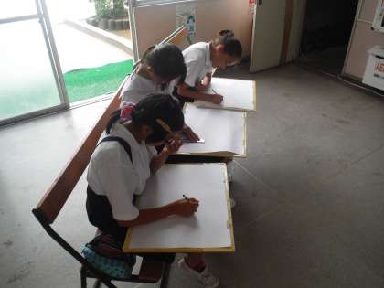 各人が描きたい場所を決めて、そこから見える風景を描いています。