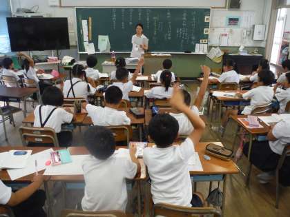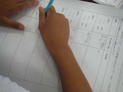 「ゆうすけ村の小さな旅館」の学習で、時を表す言葉に気を付けて、段落分けをしました。