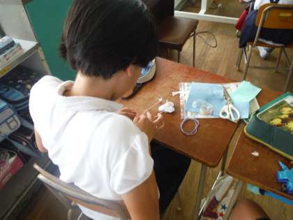 フェルトを使って、ブックカバー等それぞれ思い思いの作品を制作していました。