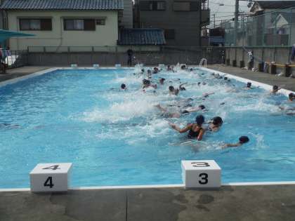水温・気温とも少し低かったようですが、子どもたちは、元気いっぱいプール水泳を楽しく学習していました。