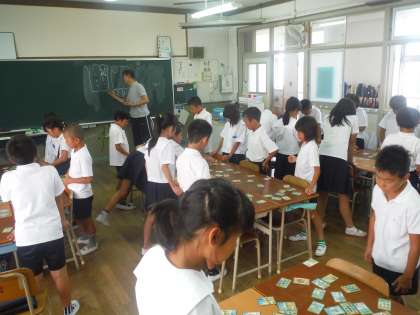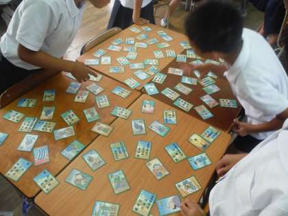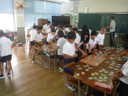 いろはがるたをしました。一枚でも多く取ろうと、みんな熱気がはいっていました。
