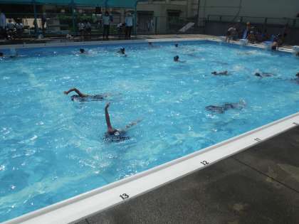 1学期、最後のプール水泳を行いました。昨日、梅雨が明け、晴天のもとプール水を楽しく行うことができました。