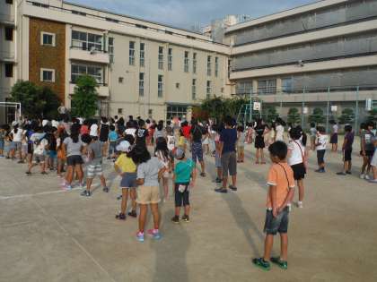 本日より、朝6時30分から、本校グランドにてラジオ体操が始まりました。たくさんの子どもたちが参加してくれました。保護者の皆様に、多大なる応援していただいています。