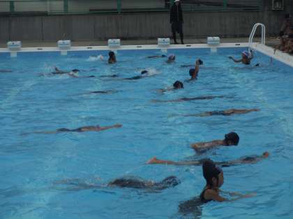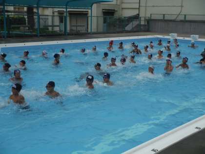 今日は、曇り空で少し涼しかったようですが、たくさんの子どもたちがプール水泳に来てくれました。