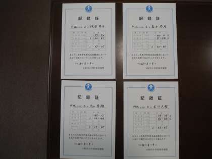 8月9日に行われた、大阪市児童水泳記録会に参加した子どもたちに、記録書を渡しました。みんなよく泳ぎました!