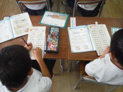 計算ドリルの答え合わせをしました。