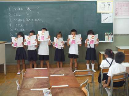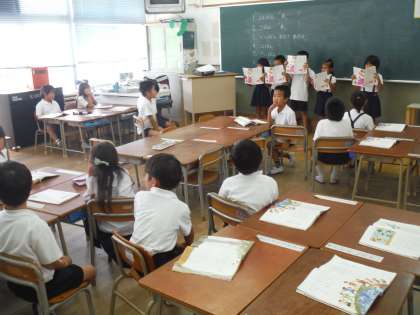 皆の前で班ごとに音読をして、最後にしっかりできていた班を班ごとに決め、発表しました。