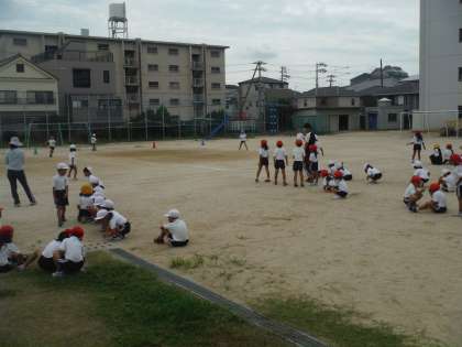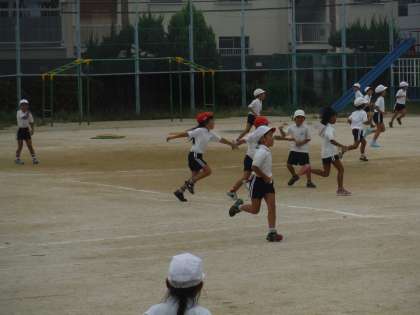 久しぶりに運動場での体育の授業でした。今日は、とても涼しかったので気持ちよく身体をを動かすことができました。