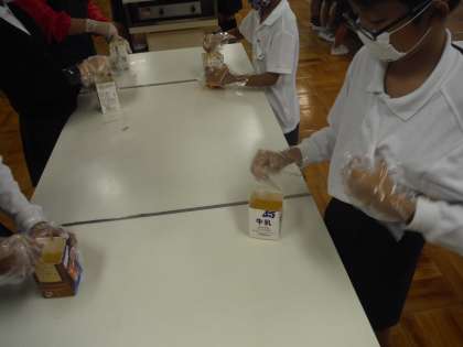 保健委員会で、石鹸を作ってみました。さて1週間後、石鹸に変身しているでしょうか?