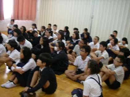 民族講師の先生にお越しいただいて、先週終わった広島平和公園への修学旅行の振り返りをしながらご高話いただきました。