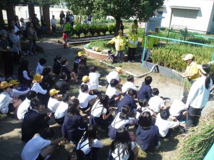土曜授業の折に、愛育会の皆様のご協力のもと、稲刈りをしました。