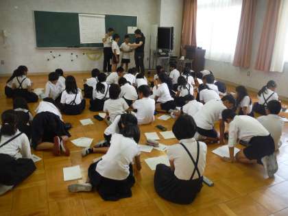 学年で集まって、学習発表会の役を決めました。