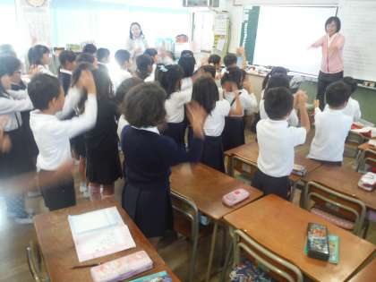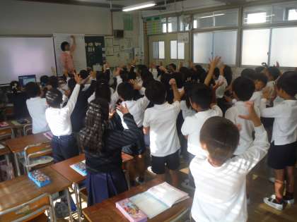 1・2組合同で、学習発表会の練習をしました。手話で歌を表現する取り組みです。手話だけでも難しいと思いますが、子どもたちはもうすでに手話も歌もできているようです。